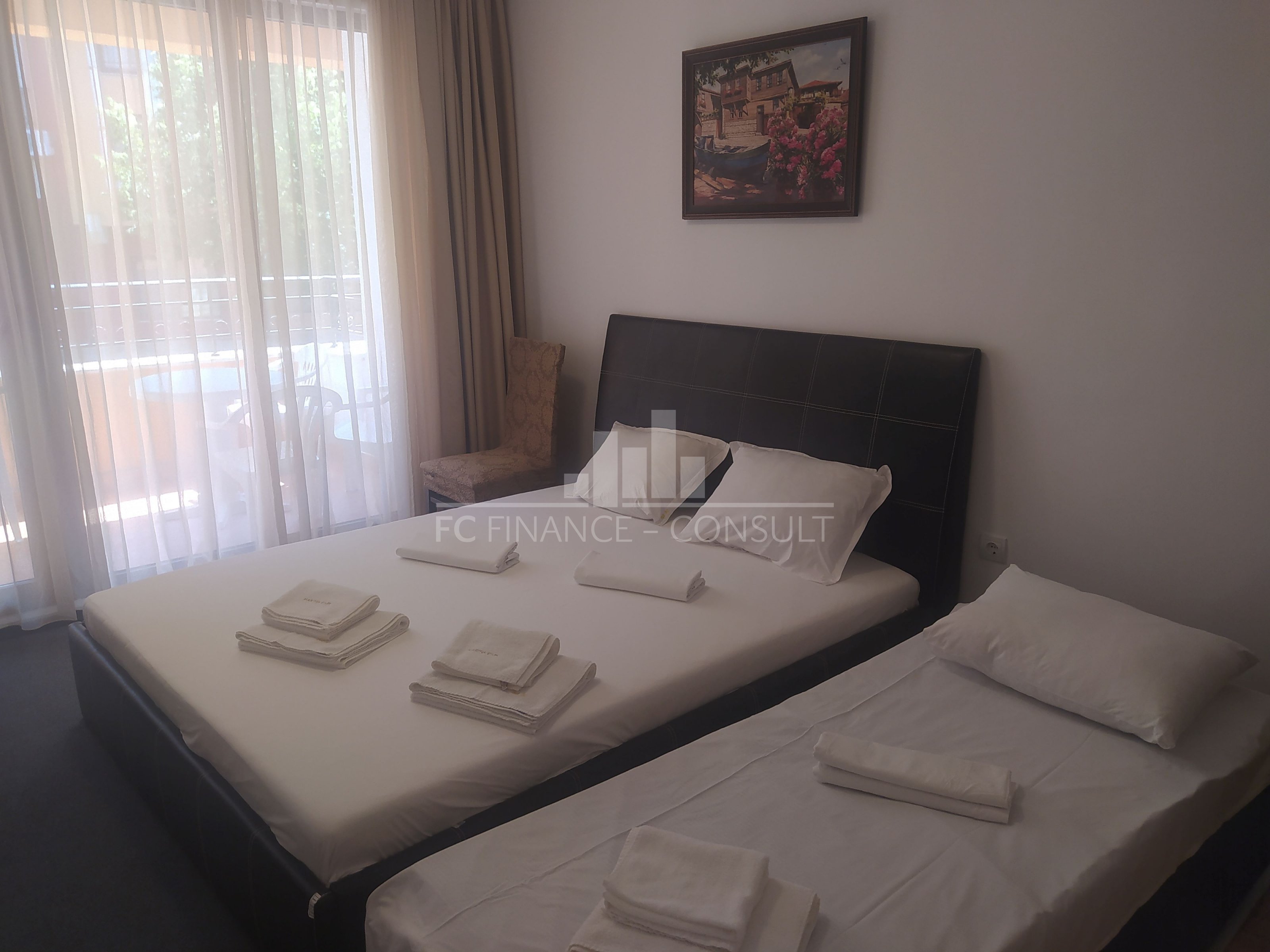 Your cottage doesn’t have to be in the mountains anymore - now it can be right by the sea in Bulgaria! We offer a long-term rental of a big studio with a floor area of 48 m², located in a private, fully equipped holiday complex right on the sea, on the 2nd floor of a five-story building. More and more people are working remotely and looking for a place where they can combine work, quality of life, and reasonable costs. Bulgaria - specifically the Sunny Beach and Aheloy - offers ideal conditions not only for digital nomads but also for people in financial or retirement pensions, or for those who want their quiet place by the sea, similar to a cottage - only with better weather. The sea literally just a few steps from the work desk. In the Aheloy area, the apartments are located directly on the beach, in a modern complex about a 15-minute drive from Burgas Airport. The complex lies on one of the most beautiful sandy beaches in the area, which also includes a small harbor with fishing boats. In the complex, the following is available: 4 restaurants; cafes and bars; 2 swimming pools and a water bar; sports center, squash courts; fitness, wellness and SPA center, massages; general practitioner and dentist offices; supermarket and smaller shops. Morning swimming in the sea, online work during the day, and evening walks along the coast become a normal part of life here. The Sunny Beach then offers a livelier atmosphere, restaurants, cafes, and services available all year round. Low costs - ideal for work and remote relaxation: long-term rental from 250 € per month; payment terms: minimum 3 months in advance + 1 refundable deposit; Internet and TV (approx. 150 channels) for an additional fee; water and electricity paid according to actual consumption; free parking where the car can be left all year round; possibility of long-term rental of our vehicle. Overall costs thus remain significantly lower than in most European seaside destinations, which is appreciated by both freelancers and online entrepreneurs, as well as seniors and people seeking a quieter lifestyle. The apartments are fully equipped, with a kitchen and all necessary household appliances. Types of apartments currently available: studios; 2-room; 3-room. The apartments are suitable for individuals, couples, families, colleagues working remotely, as well as financial and retirement pensioners. Simply for everyone who dreams of a better life - a life by the sea. Sunny Beach & Aheloy - excellent accessibility. Great transport connections: airport, public transport, road network; Burgas Airport just a few minutes from Aheloy and the Sunny Coast; flight connections available even outside the season; Varna Airport approx. 80 km. Excellent location - Nesebar, Sunny Beach, Aheloy, Pomorie, Sveti Vlas, Elenite - all just a few minutes from each other. Everything within reach of Burgas city center: excellent civic amenities, safety, and constant international support. Schools, kindergartens, healthcare facilities, post office, numerous supermarkets, restaurants, and a complete network of services - simply put, everything is literally at your fingertips. The apartments are in our ownership, without real estate agents - no commissions are paid. English-speaking support is provided on-site throughout the year. Some Europeans already live here long-term - working online or having found a new life rhythm. It is a unique opportunity for summer living in a beautiful and pleasant environment.