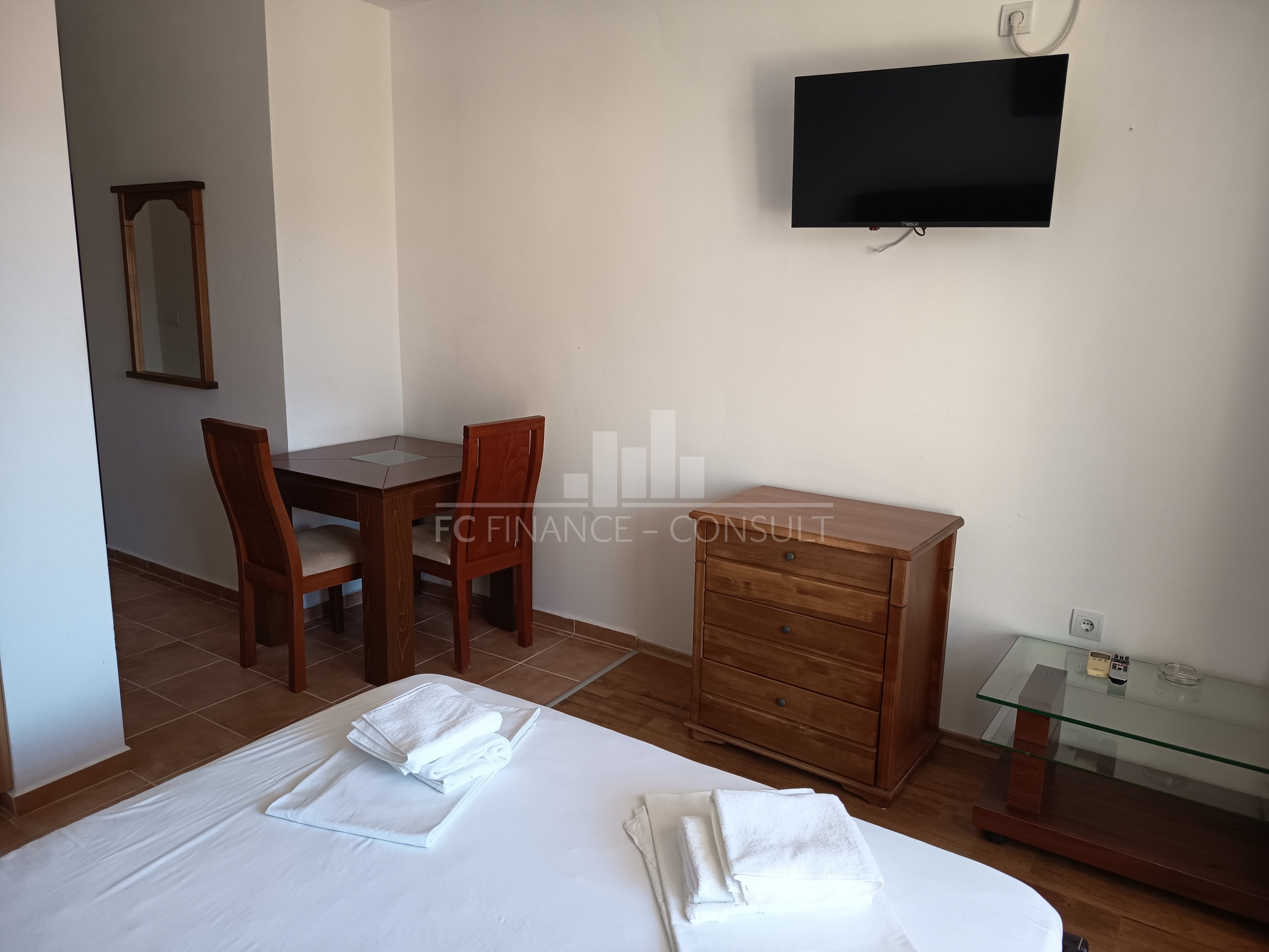 The sea and pool view studio apartment with a a floor area of 34 m2 is situated in a private fully equipped holiday complex on the 4th floor of a five-storey house in a beautiful and quiet location Aheloy in the Gulf of Burgas, near the healing mud of Pomeranian salt flats. This resort is not very famous, it stays away from the crowds of tourists and offers a peaceful holiday by the Black Sea. The resort is a 15-minute drive from Burgas Airport and is located directly on one of the beaches, which also has a small marina with yachts and fishing boats. The holiday complex is built on 40,000 m2 area and consists of 4 individual areas / parts. Marina, Cove, Tower and Lighthouse form the original concept of each of its 750 apartments. In the whole area you can use 4 restaurants, many cafes and bars, 2 swimming pools with water bars, spa, sports center, squash courts, wellness and SPA center, massages, general practitioner s office, supermarket and several others smaller shops with a diverse offer of various goods. High-speed internet and cable TV are also available in each apartment. The property is suitable for your own rest and recreation and also as an investment for rent. It is a unique possibility of summer living in a beautiful and pleasant environment.