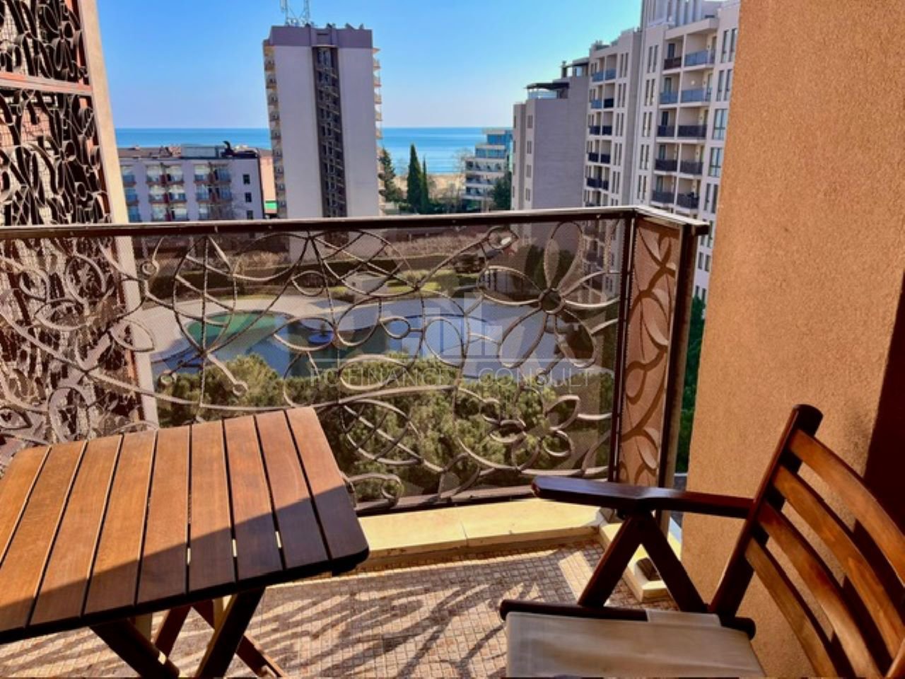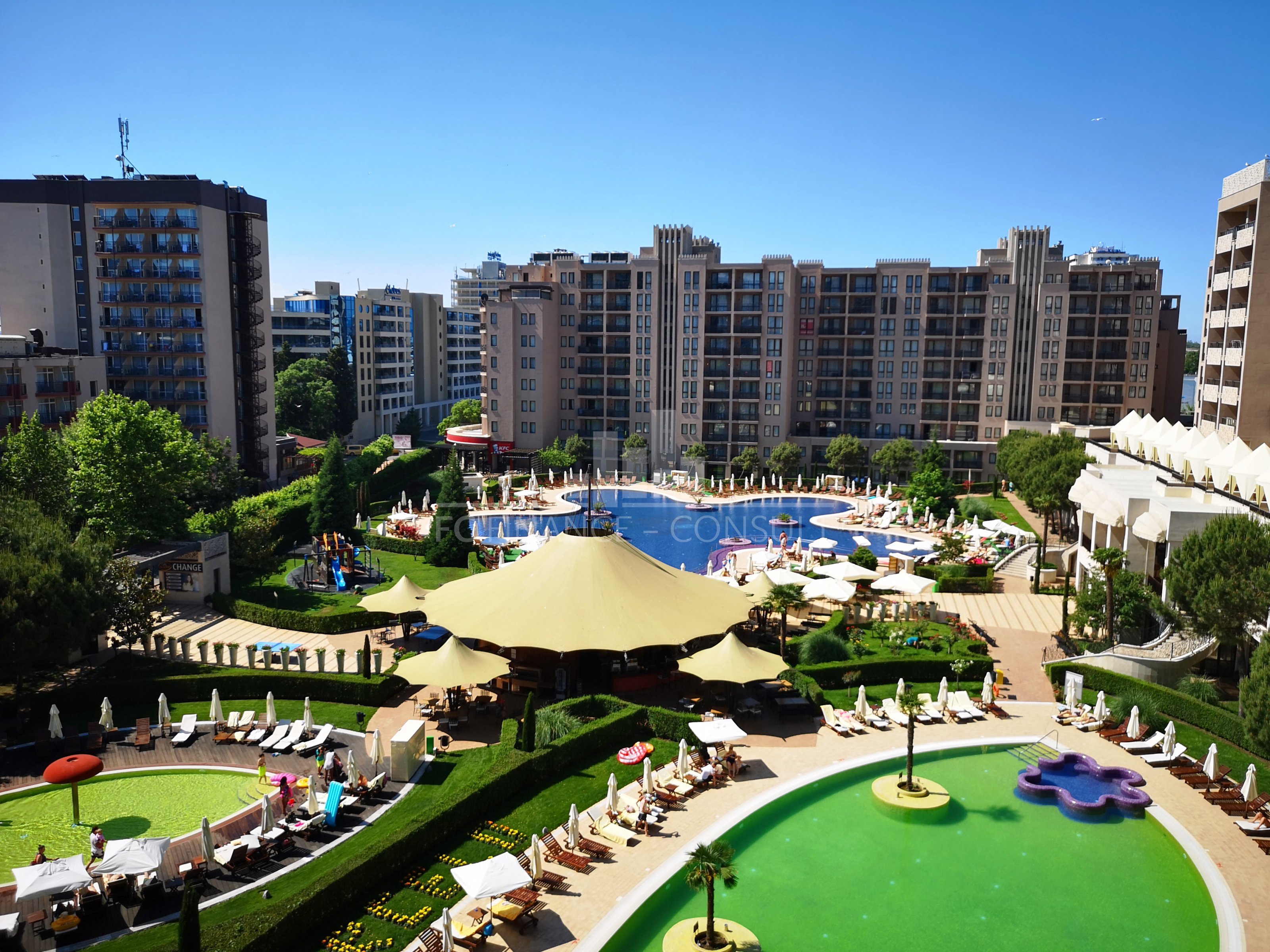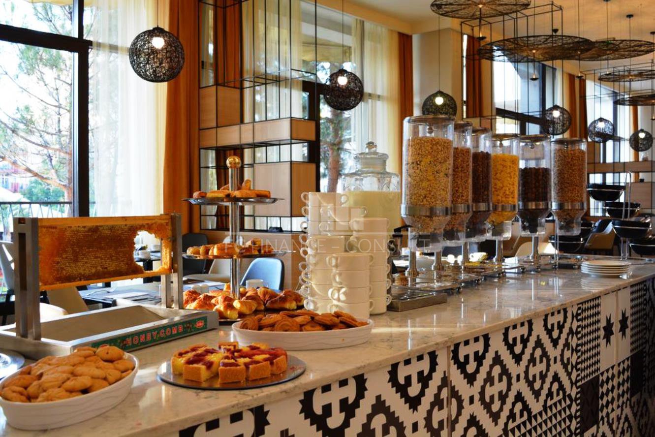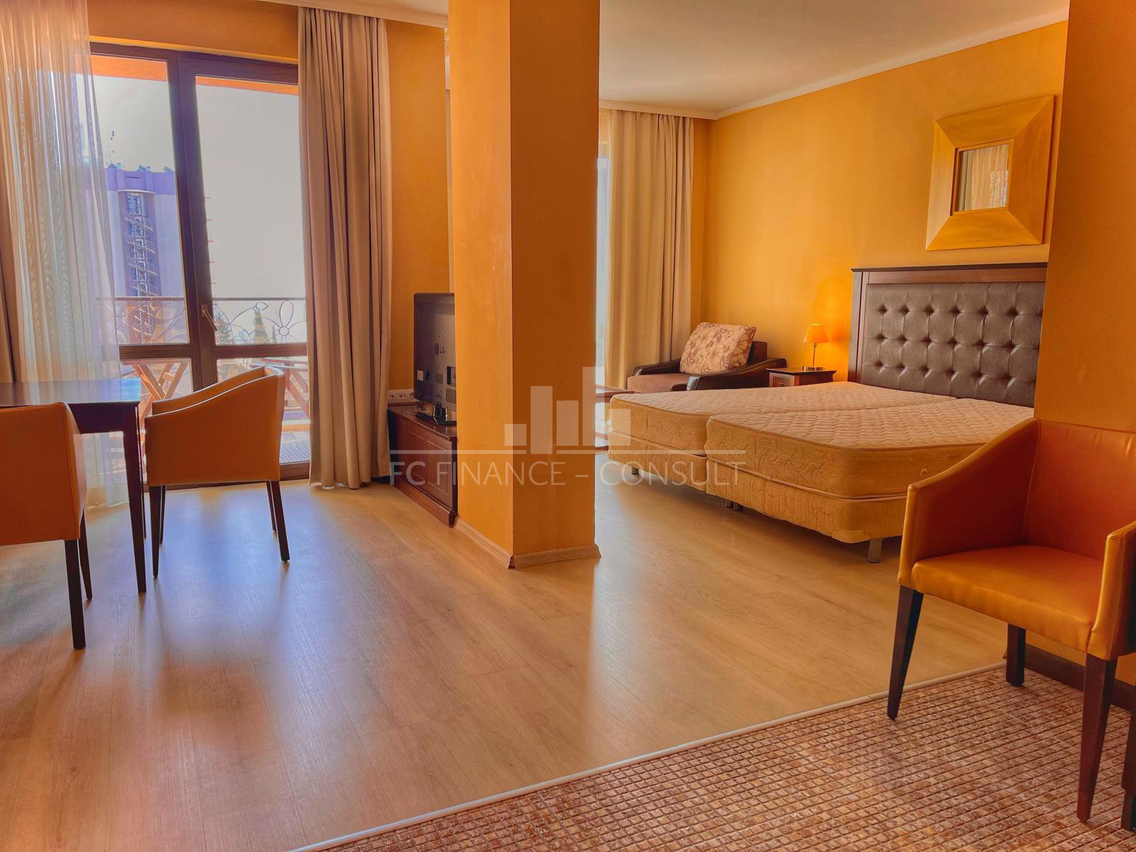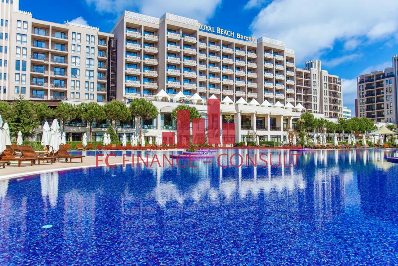 The studio (56 m²) is located on the 6th floor of a luxury complex in Sunny Beach, just a few steps from the beach, and has a sea view. Possibility to convert into a two-bedroom apartment. The complex offers many services and activities for all ages. The complex is dominated by its large garden, 4 large swimming pools and a shopping center with 99 shops offering various types of goods. Who is looking for rest and relaxation will certainly appreciate the modern wellness center, which offers an indoor heated pool, whirlpool, a sauna world (steam sauna, Turkish bath, infrared sauna and Finnish sauna) and a Kneipp path. You can also use the gym, playgrounds, sports fields and several bars and restaurants.