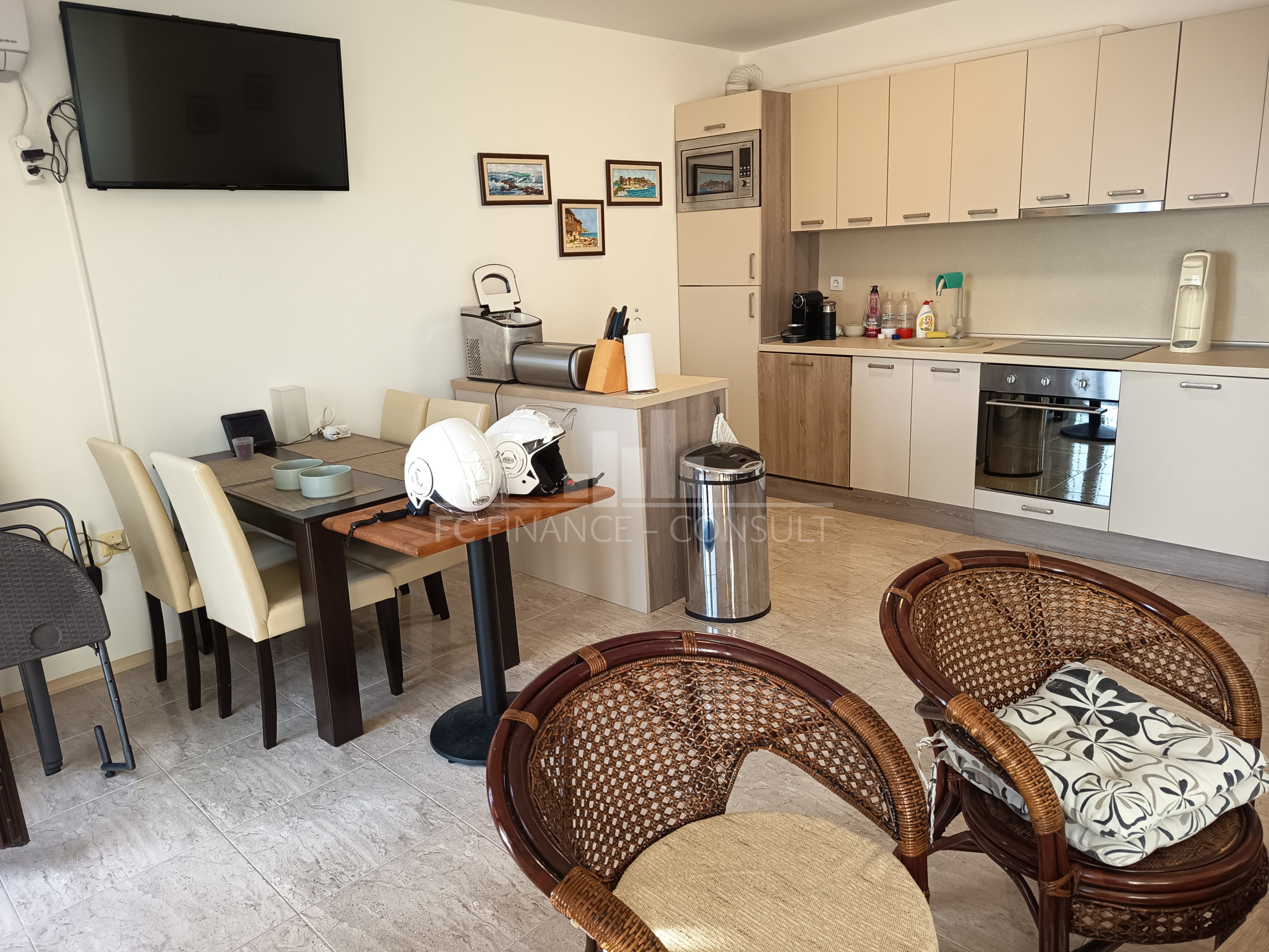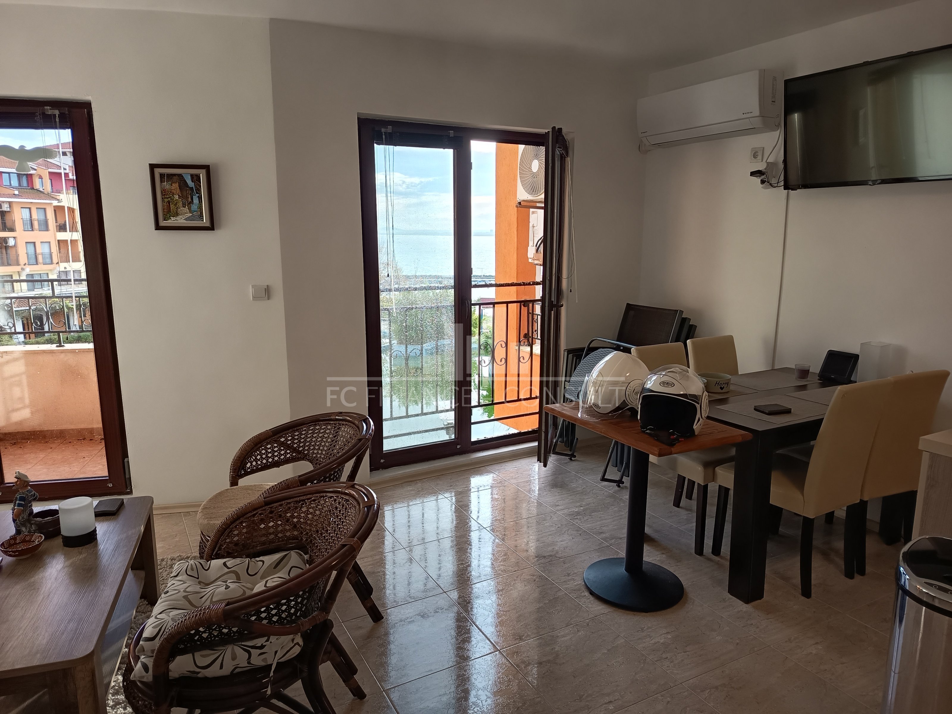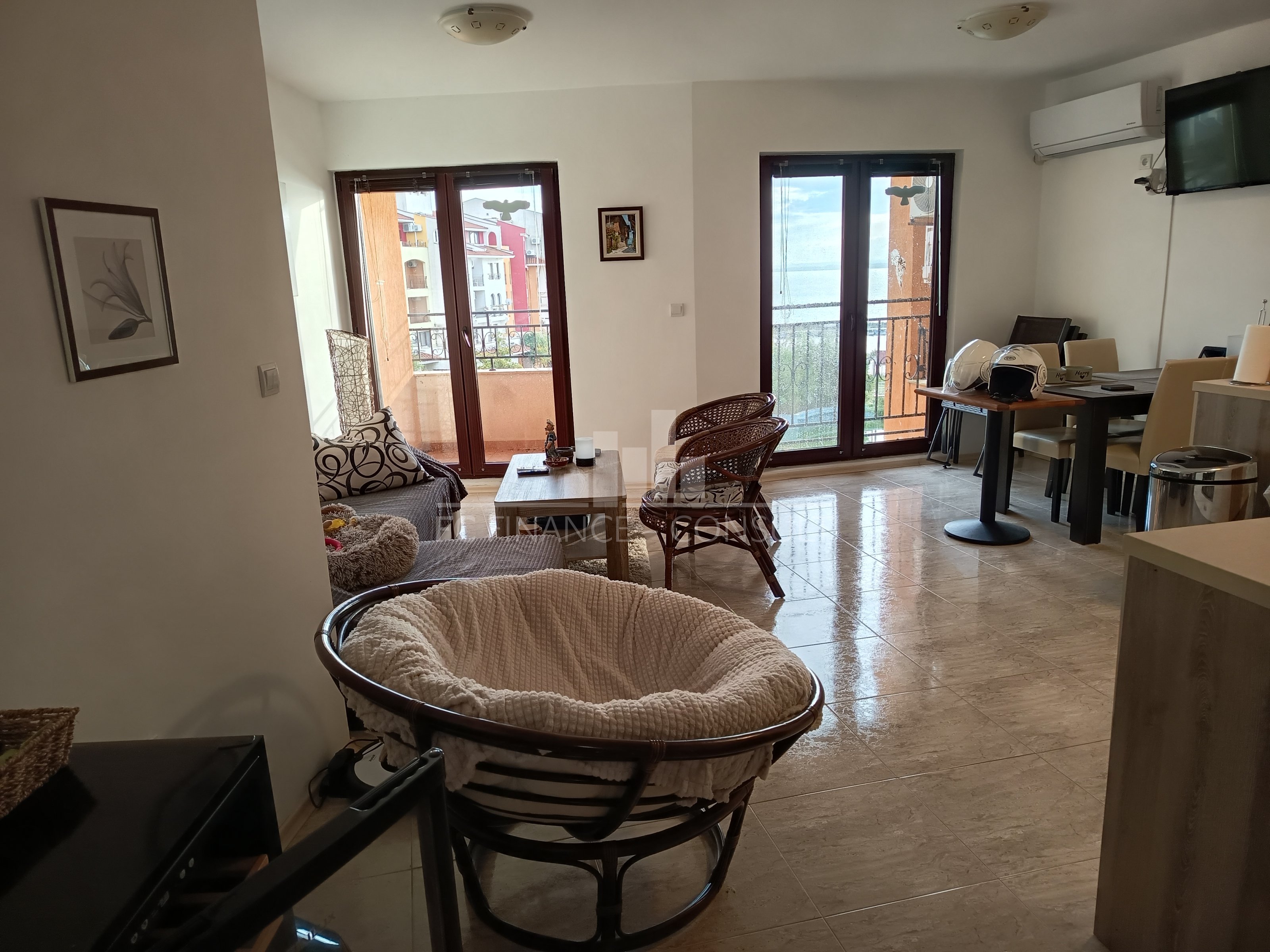 This 2-bedroom apartment with a kitchenette, offering views of the sea, swimming pool, and marina, has a total floor area of 90 m² and is located in a private, fully equipped holiday complex on the 3rd floor of a five-story building. The resort complex is situated in the attractive area of Aheloy, in the Burgas Bay, close to the therapeutic mud of the Pomorie salt lakes. As this resort is not widely known, it remains free from mass tourism and offers a peaceful holiday by the Black Sea. The complex is approximately 15 minutes’ drive from Burgas Airport and is located directly on one of the beautiful sandy beaches. The beach also features a small marina, where yachts and fishing boats are moored. Within the complex, residents and guests can enjoy four restaurants, numerous cafés and bars, two swimming pools with pool bars, a sports center, squash courts, a wellness and SPA center, massage services, a general practitioner’s office, a supermarket, and several smaller shops offering a wide range of goods. Internet access and cable television are available in every apartment. The property is suitable not only for private recreational use, but also as an investment opportunity for rental purposes. It represents a rare opportunity for summer living in a beautiful and tranquil environment.The property is suitable for your own rest and recreation and also as an investment for rent. It is a unique possibility of summer living in a beautiful and pleasant environment.