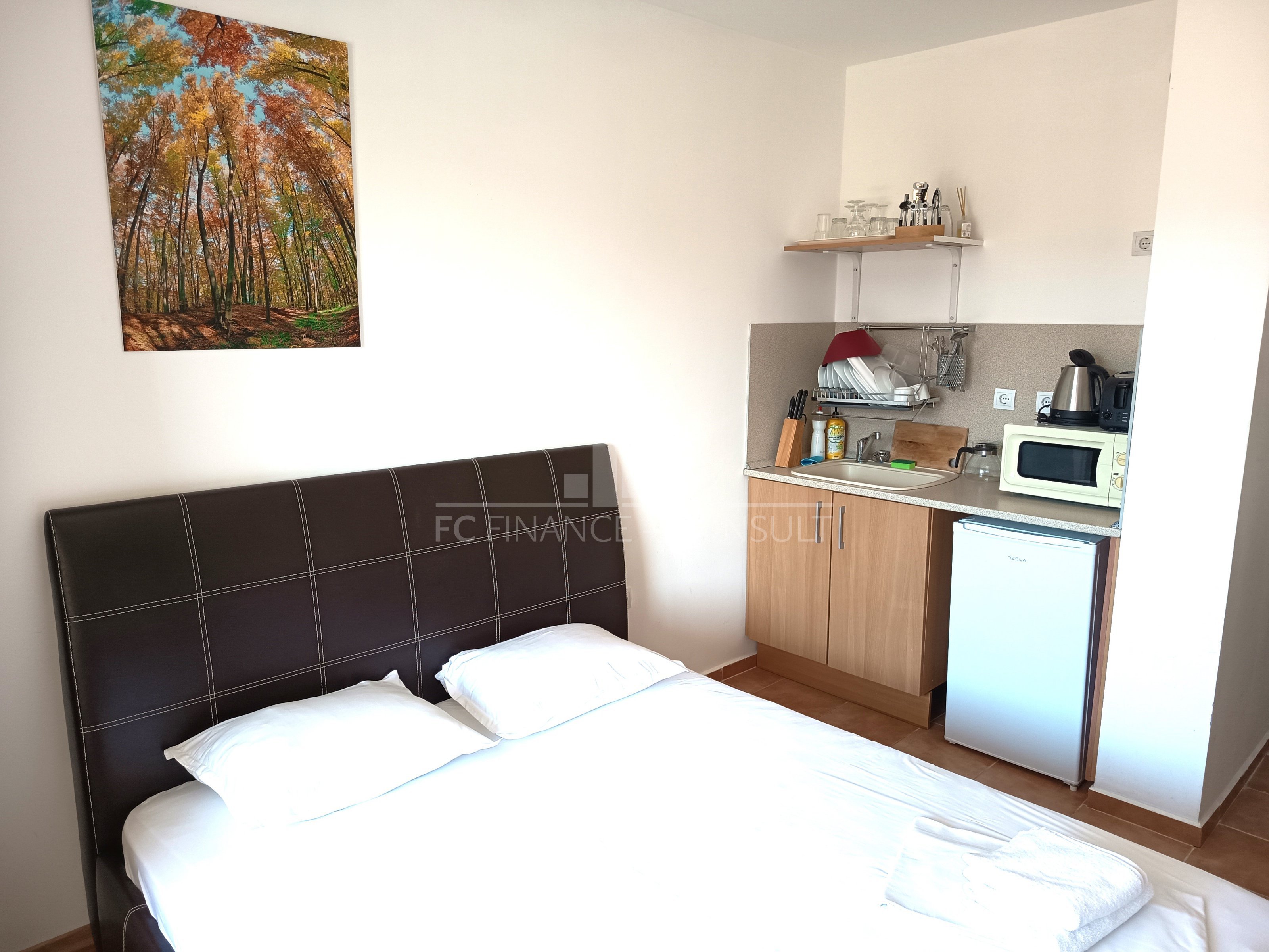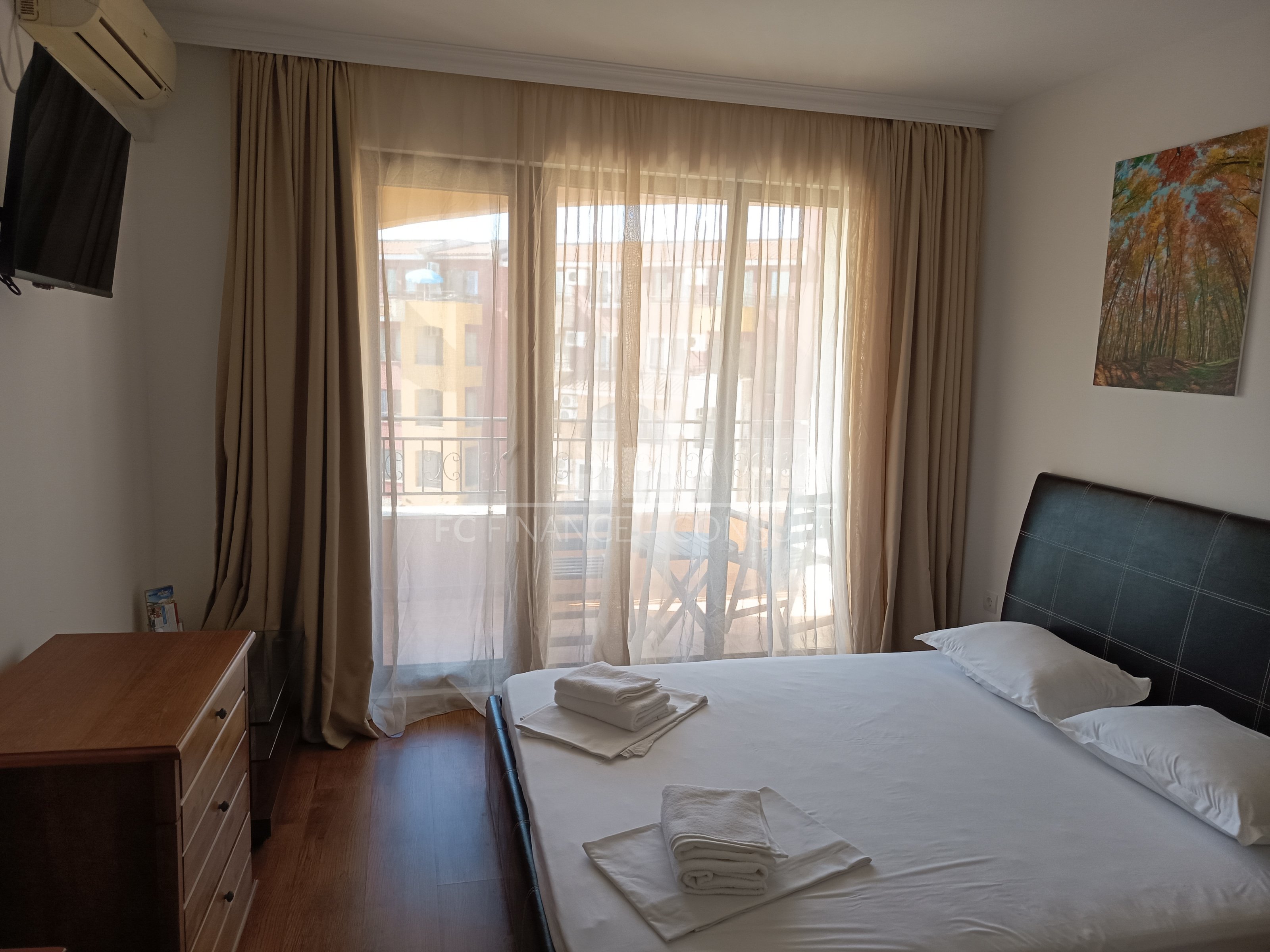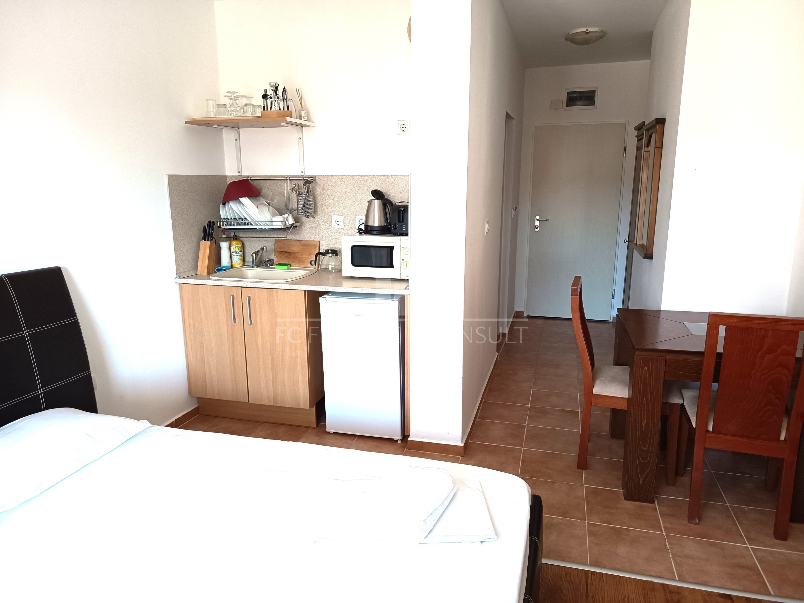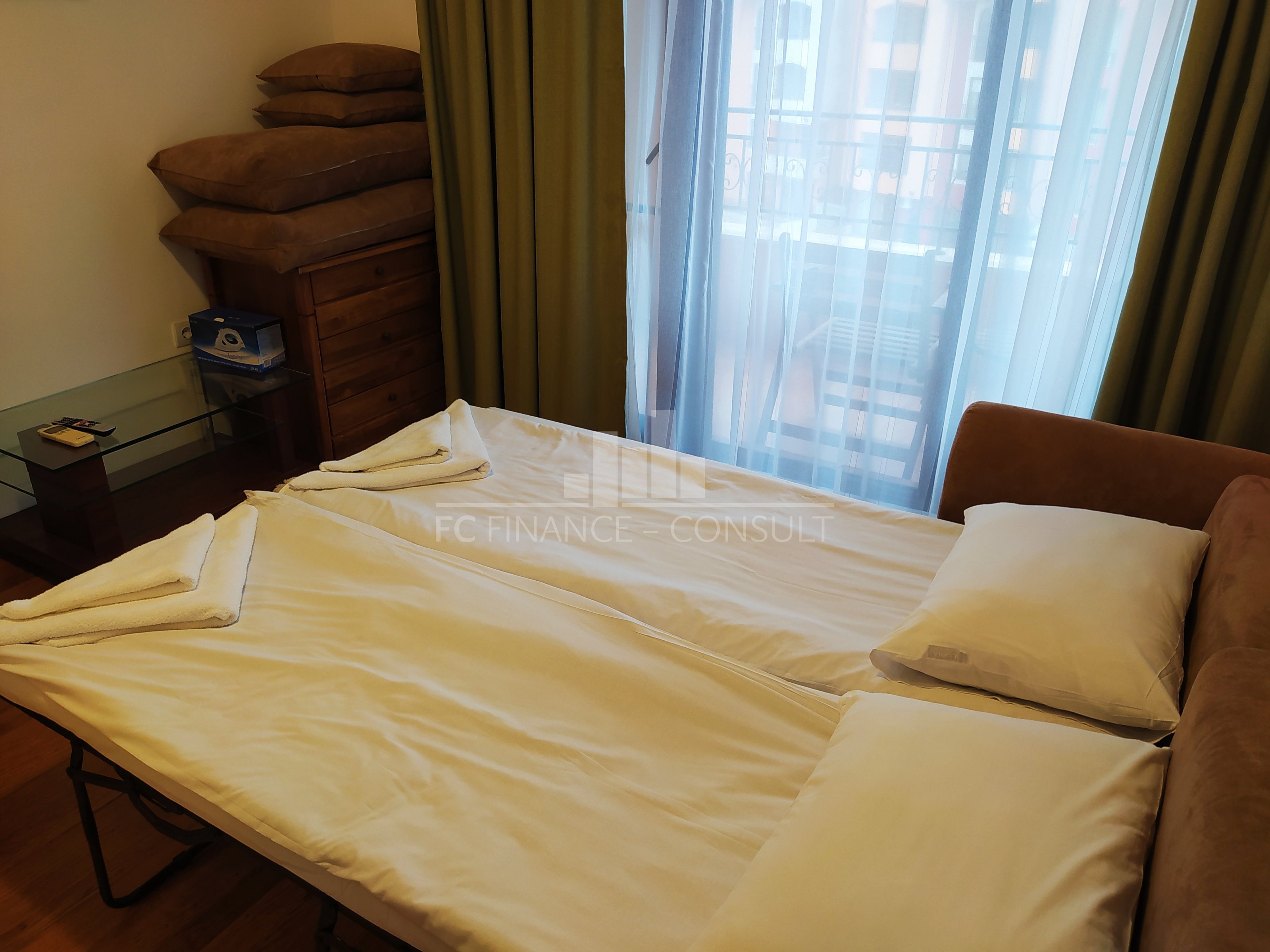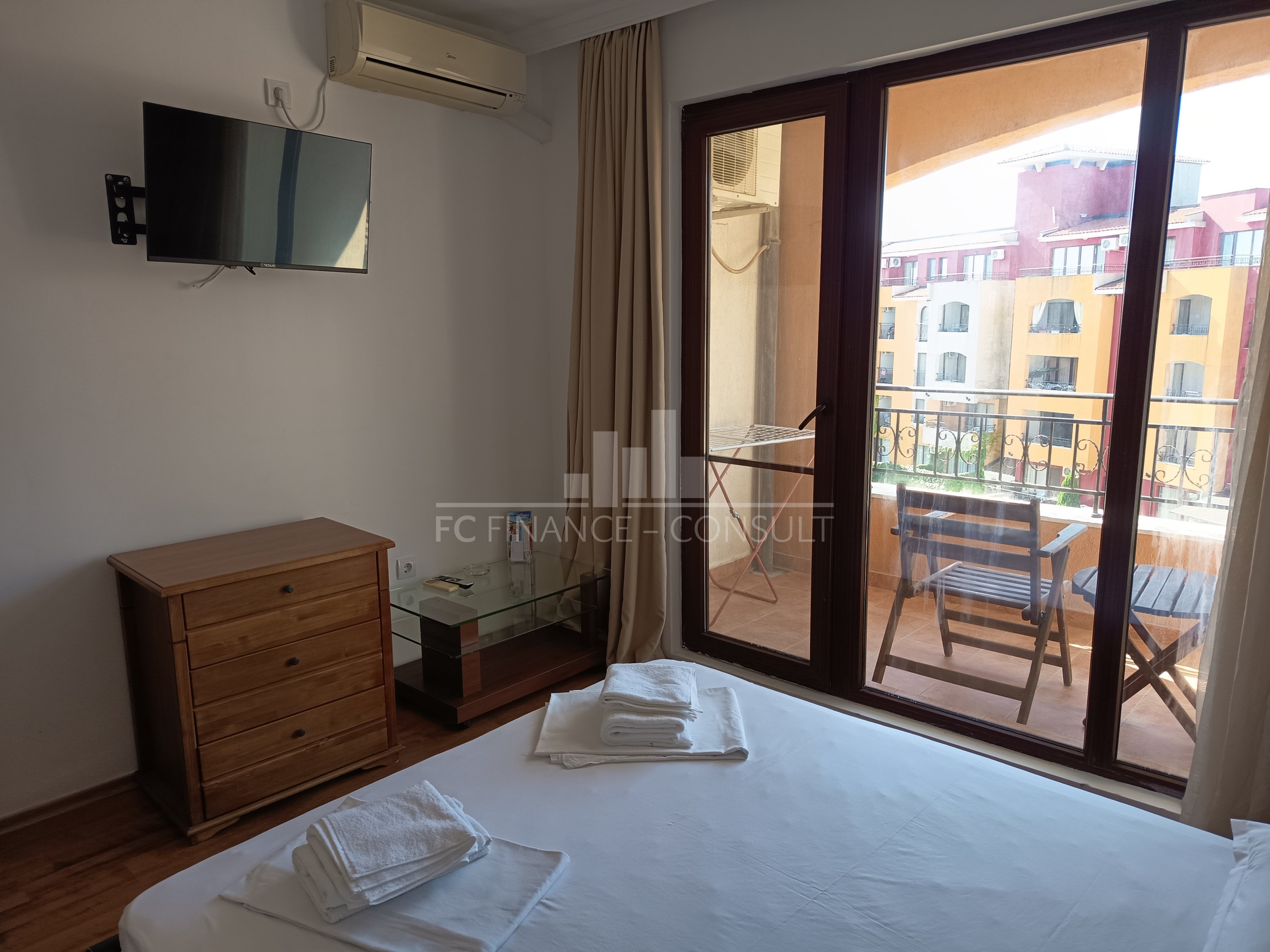 The sea and pool view studio apartment with a a floor area of 34 m2 is situated in a private fully equipped holiday complex on the 4th floor of a five-storey house in a beautiful and quiet location Aheloy in the Gulf of Burgas, near the healing mud of Pomeranian salt flats. This resort is not very famous, it stays away from the crowds of tourists and offers a peaceful holiday by the Black Sea. The resort is a 15-minute drive from Burgas Airport and is located directly on one of the beaches, which also has a small marina with yachts and fishing boats. The holiday complex is built on 40,000 m2 area and consists of 4 individual areas / parts. Marina, Cove, Tower and Lighthouse form the original concept of each of its 750 apartments. In the whole area you can use 4 restaurants, many cafes and bars, 2 swimming pools with water bars, spa, sports center, squash courts, wellness and SPA center, massages, general practitioner s office, supermarket and several others smaller shops with a diverse offer of various goods. High-speed internet and cable TV are also available in each apartment. The property is suitable for your own rest and recreation and also as an investment for rent. It is a unique possibility of summer living in a beautiful and pleasant environment.