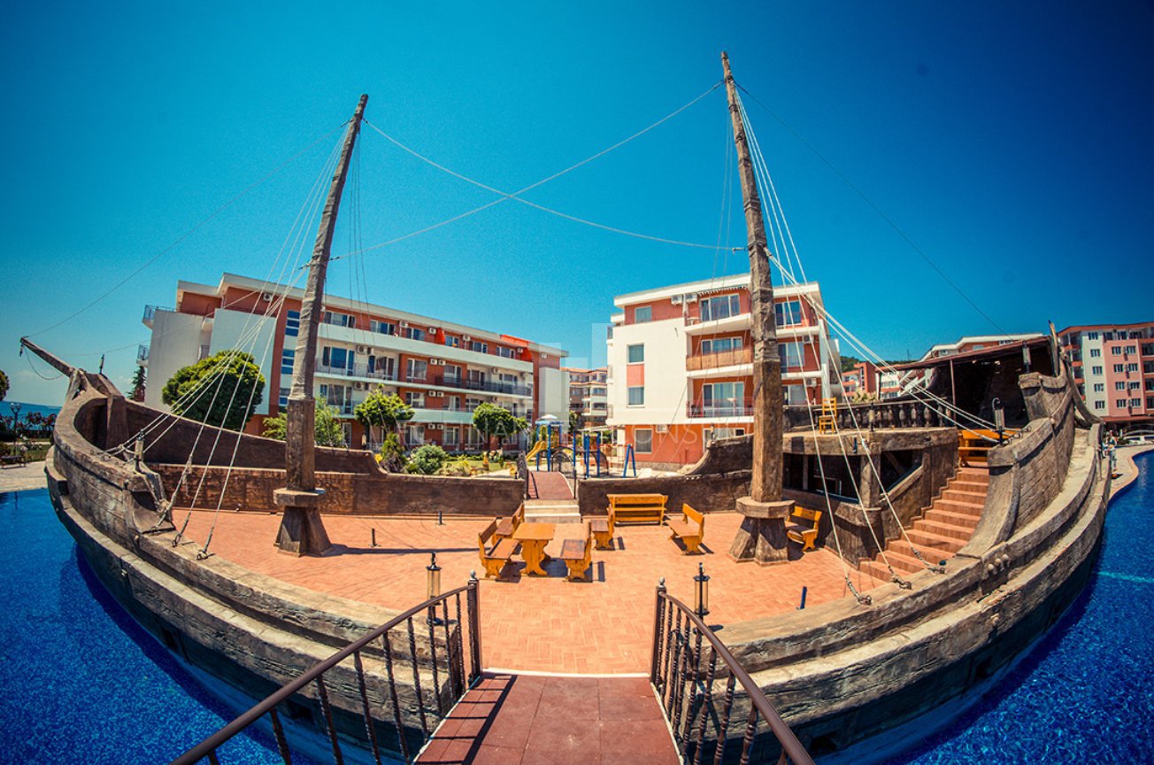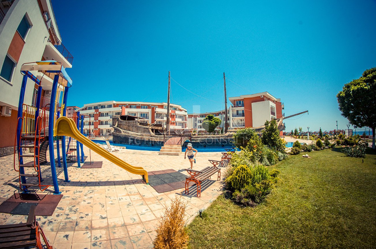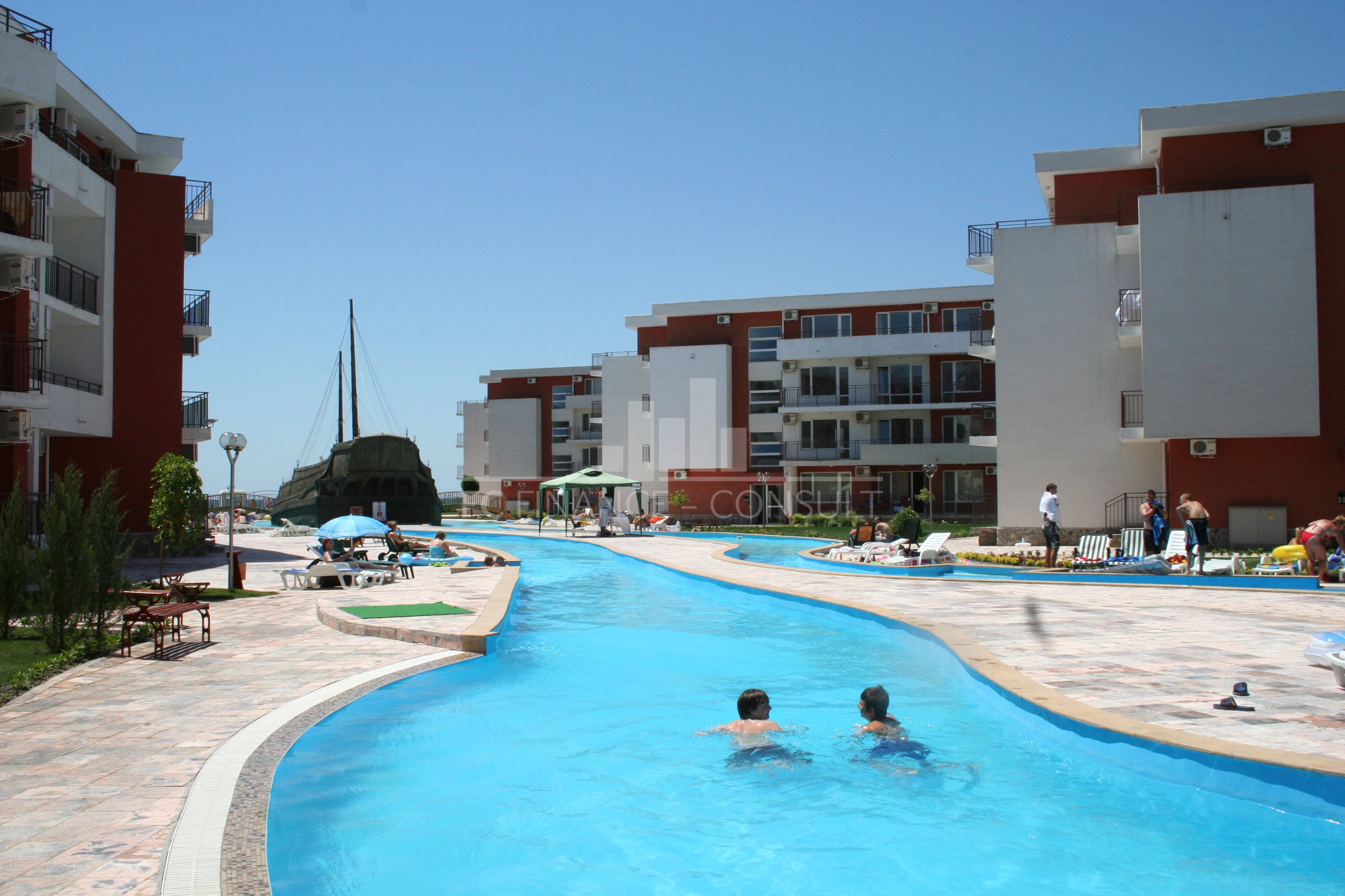 We offer a beautiful spacious apartment for sale. Apartment with a total floor area of 47,07 m2 situated on the 1st floor of a three-storey house. The apartment is located in a modern holiday complex right on one of the sandy beaches in Elenite, Bulgaria. The holiday complex offers many diverse services, leisure activities and other opportunities for all ages. Of course, there are luxurious large pools flowing directly along the offered apartment. Financing: For this property, we are able to process installment sales in equal monthly annuity payments for up to 7 years. Down payment (own funds) from 30%, private financing (without proof of income). Interest-free period of up to 12 months. We are able to mediate the entire sales process remotely according, to your needs and requirements, including the resolution of financial issues and other formalities. You can easily buy your dream apartment from the comfort of your home online and simple. You can exchange the apartment you have chosen from home for another. We will exchange it for any other apartment currently available in the same complex.