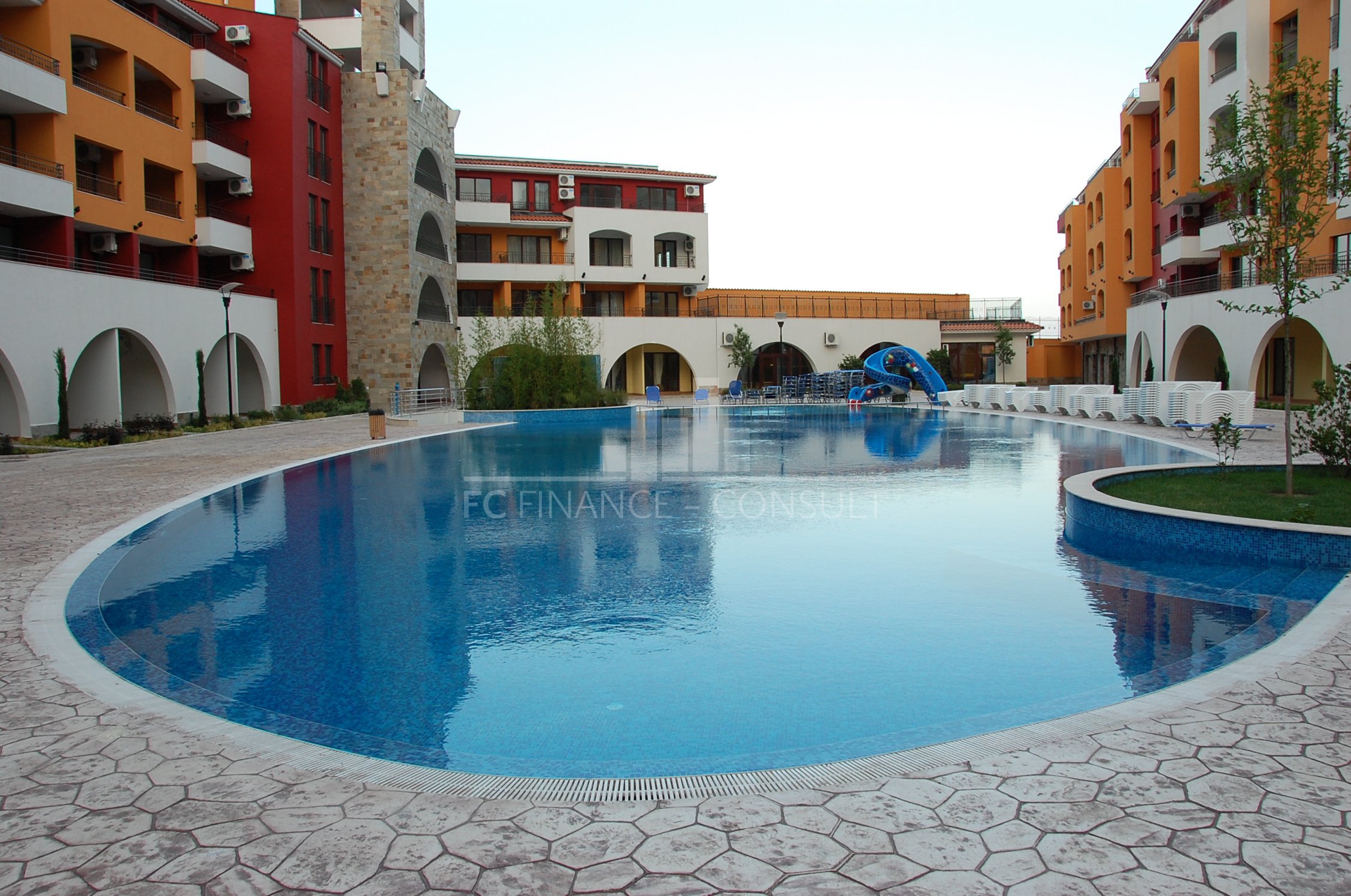 The ultra sea view 2 bedroom apartment with a floor area of 95 m2 is situated in a private fully equipped holiday complex on the 2nd floor of a five-storey house in a beautiful and quiet location Aheloy in the Gulf of Burgas, near the healing mud of Pomeranian salt flats. This resort is not very famous, it stays away from the crowds of tourists and offers a peaceful holiday by the Black Sea. The resort is a 15-minute drive from Burgas Airport and is located directly on one of the beaches, which also has a small marina with yachts and fishing boats. The holiday complex is built on 40,000 m2 area and consists of 4 individual areas / parts. Marina, Cove, Tower and Lighthouse form the original concept of each of its 750 apartments. In the whole area you can use 4 restaurants, many cafes and bars, 2 swimming pools with water bars, spa, sports center, squash courts, wellness and SPA center, massages, general practitioner s office, supermarket and several others smaller shops with a diverse offer of various goods. High-speed internet and cable TV are also available in each apartment. The property is suitable for your own rest and recreation and also as an investment for rent. It is a unique possibility of summer living in a beautiful and pleasant environment.